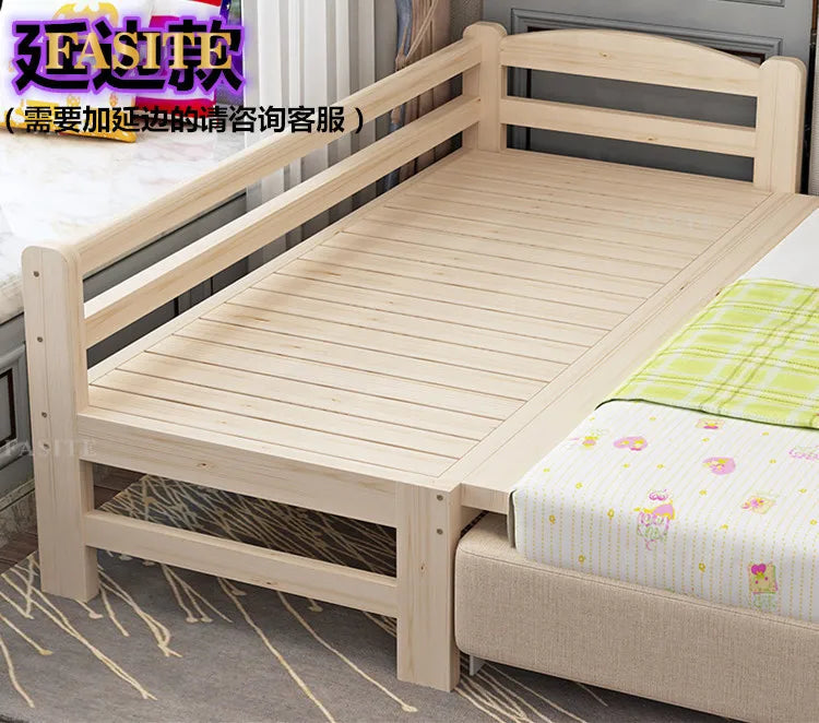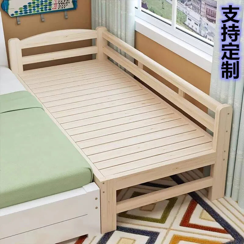 Children's splicing widened solid wood Yanbian bed simple environmentally friendly simple single bed