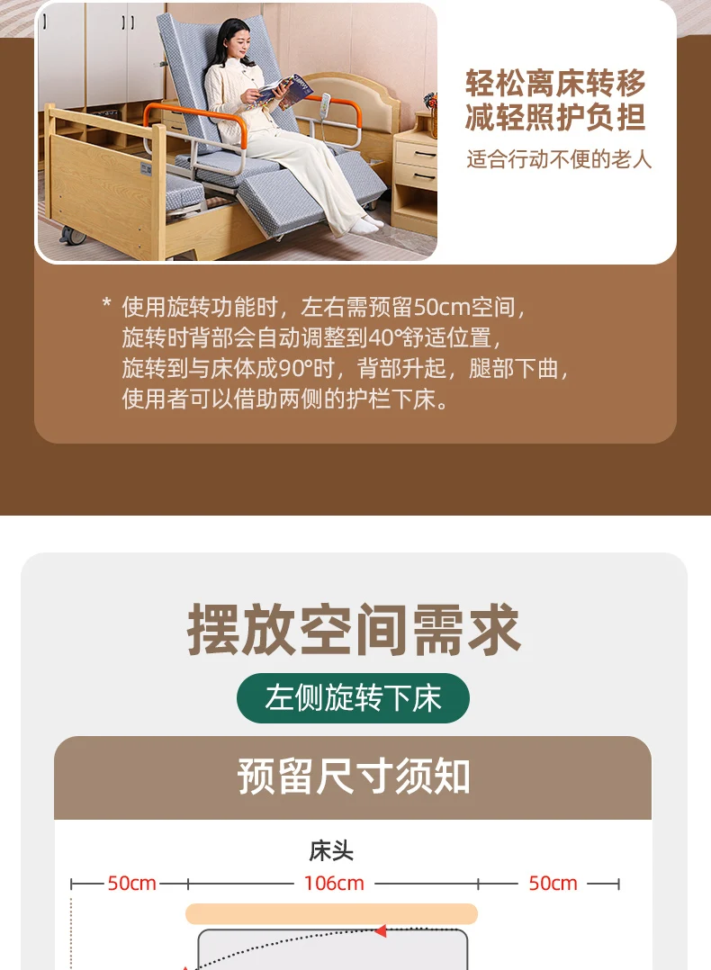 Electric rotating nursing bed Multifunctional back lift for paralyzed patients at home, suitable for remote control turning over