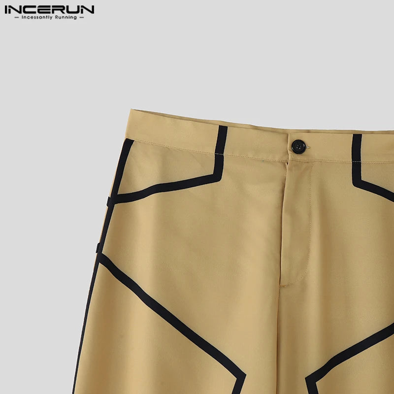 Fashion Print Men Wide Leg Pants Summer Spring Bottoms INCERUN Casual Pants Streetwear Oversize S-5XL Trousers Men's Clothing