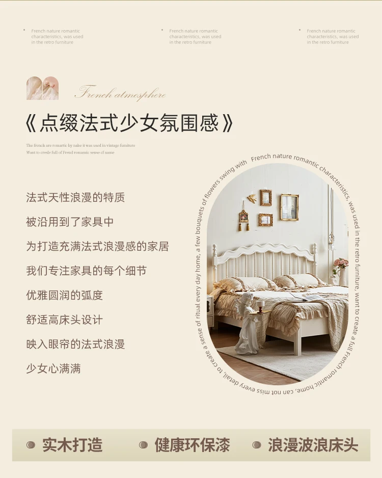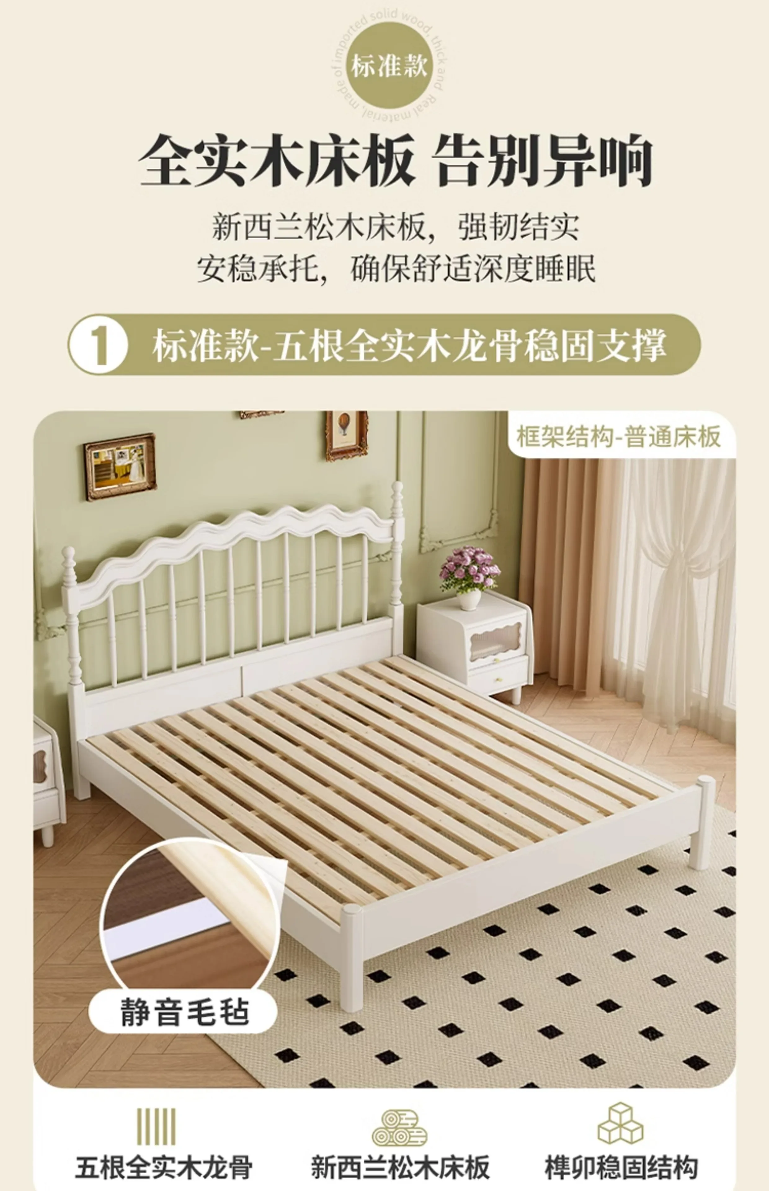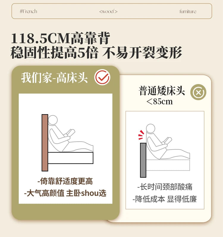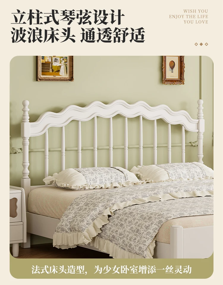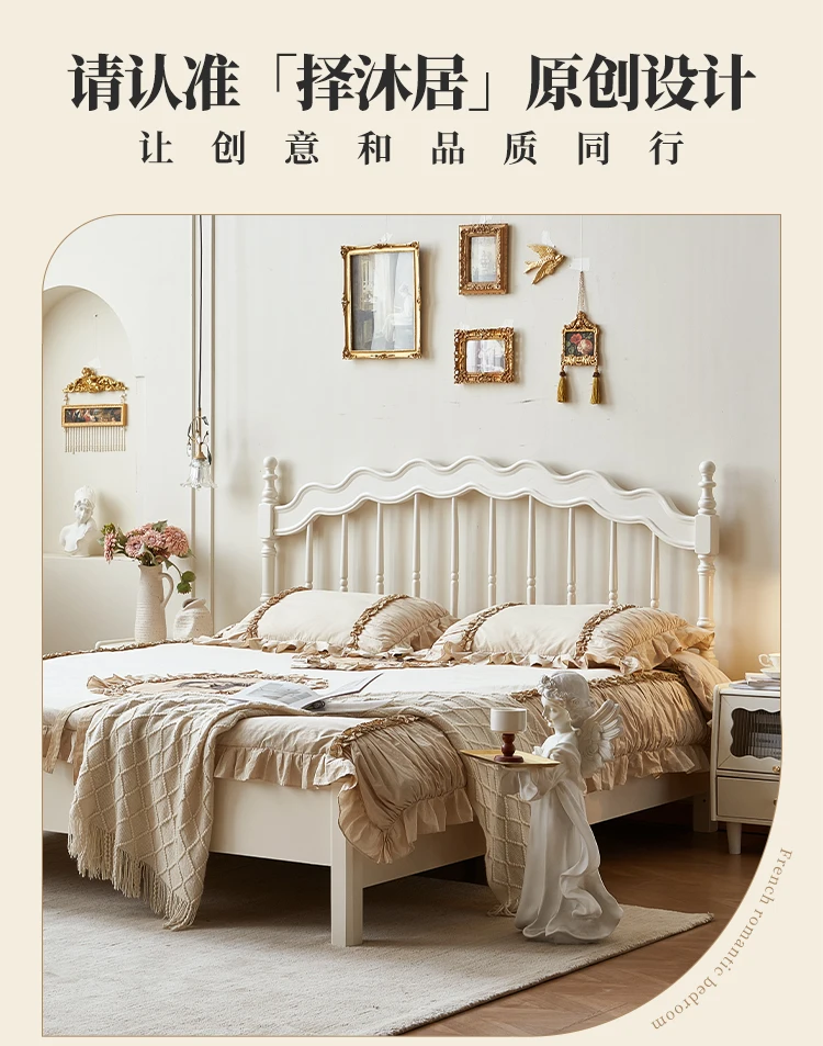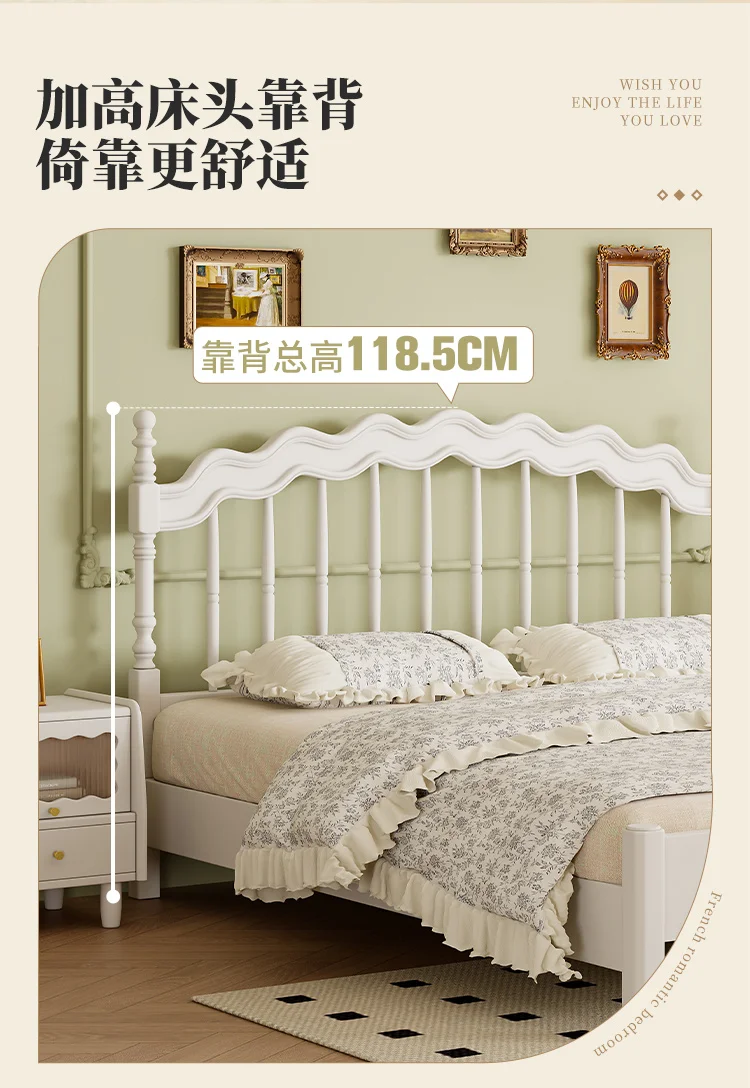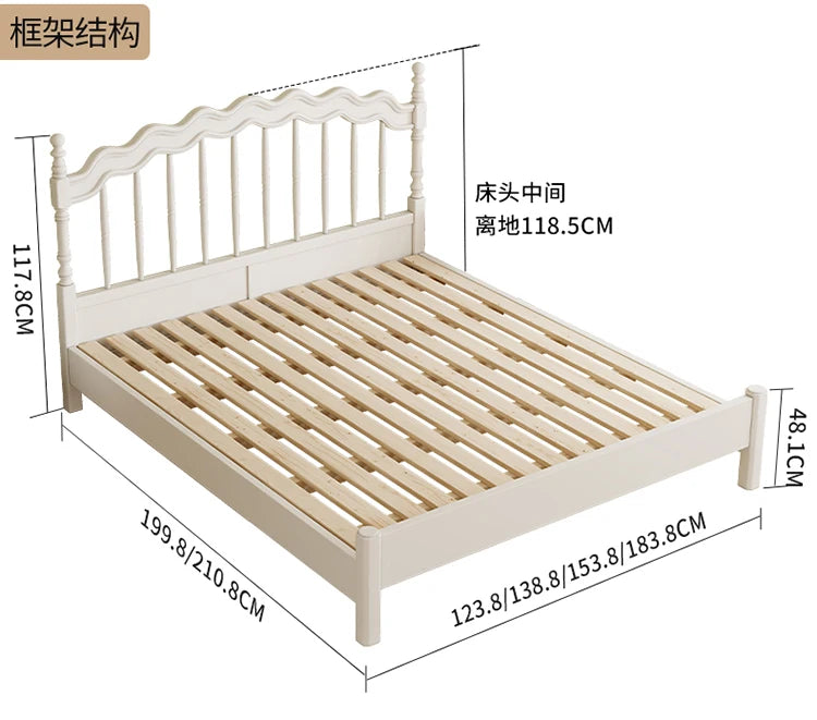 French Solid Wood Bed White Cream Wind Princess Fashion Design Bed Aesthetics Square Modern Sleeping Muebles Lounge Furniture