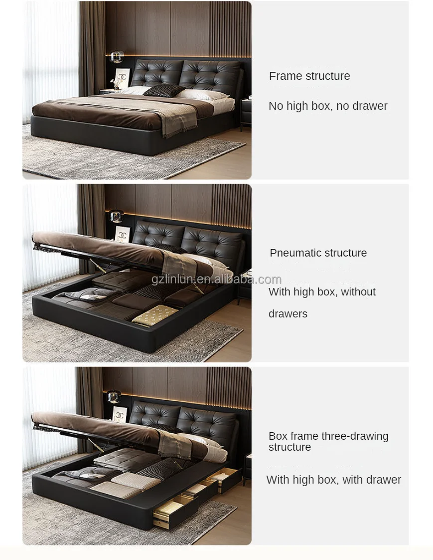 Genuine Leather bed modern simple apartment luxury double bed 1.8 meters high-end atmospheric master bedroom Queen size bed