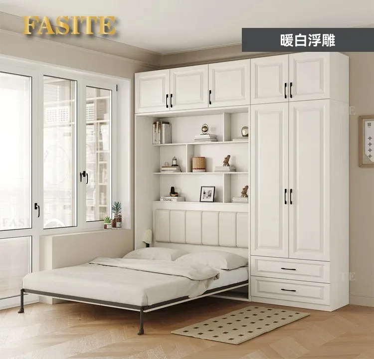 Invisible bed wall, bed, wardrobe, integrated 1.35-meter multifunctional foldable Murphy bed, flip bed under the bed