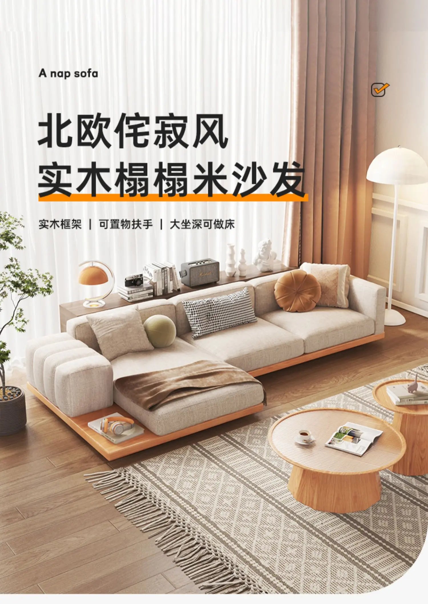 Japanese style sofa living room modern simple design hotel latex corner cotton linen art sofa log style