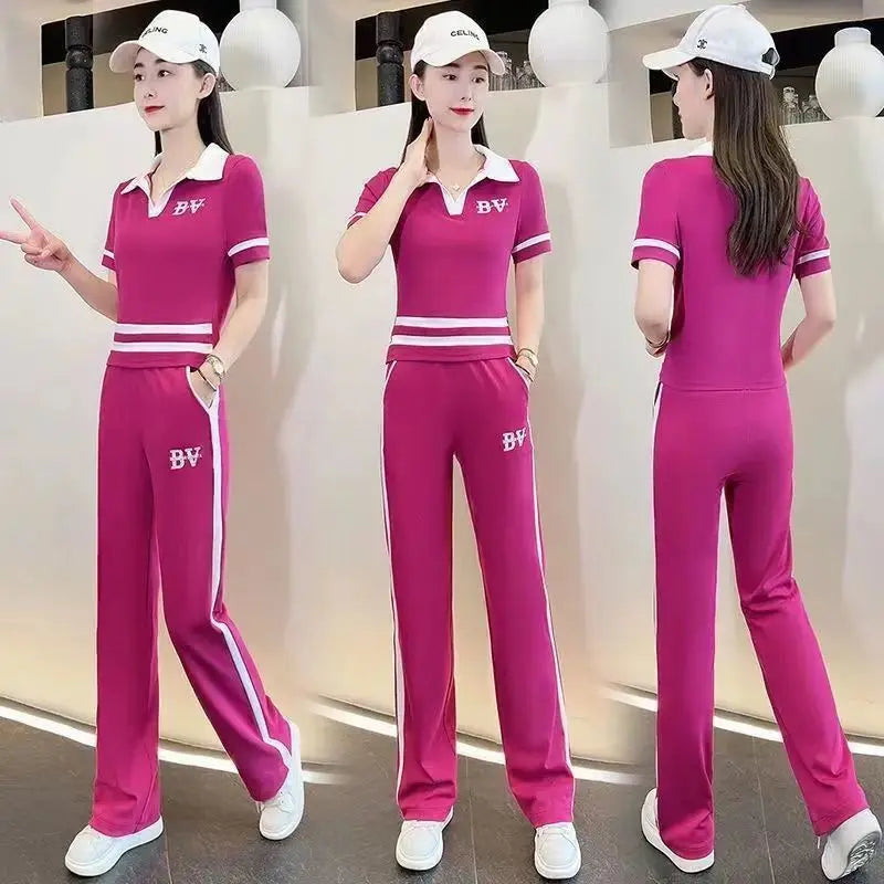 Leisure Sportswear Set for Spring and Summer New Korean Version Loose Fitting Short Sleeved Fashion and Age Reducing Two-piece
