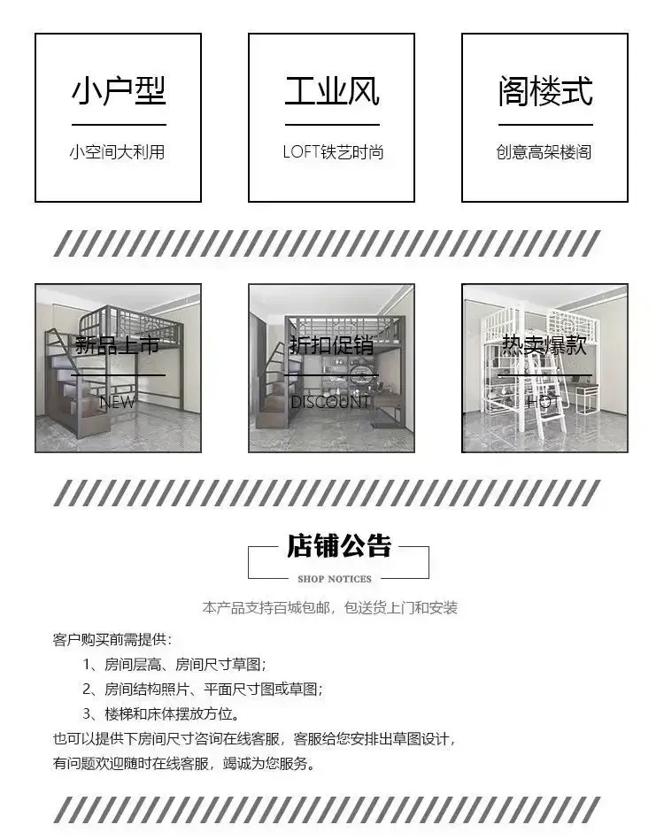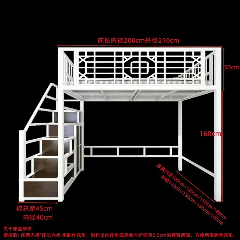 New Chinese-style loft bed elevated sheet upper floor small apartment children's apartment iron frame