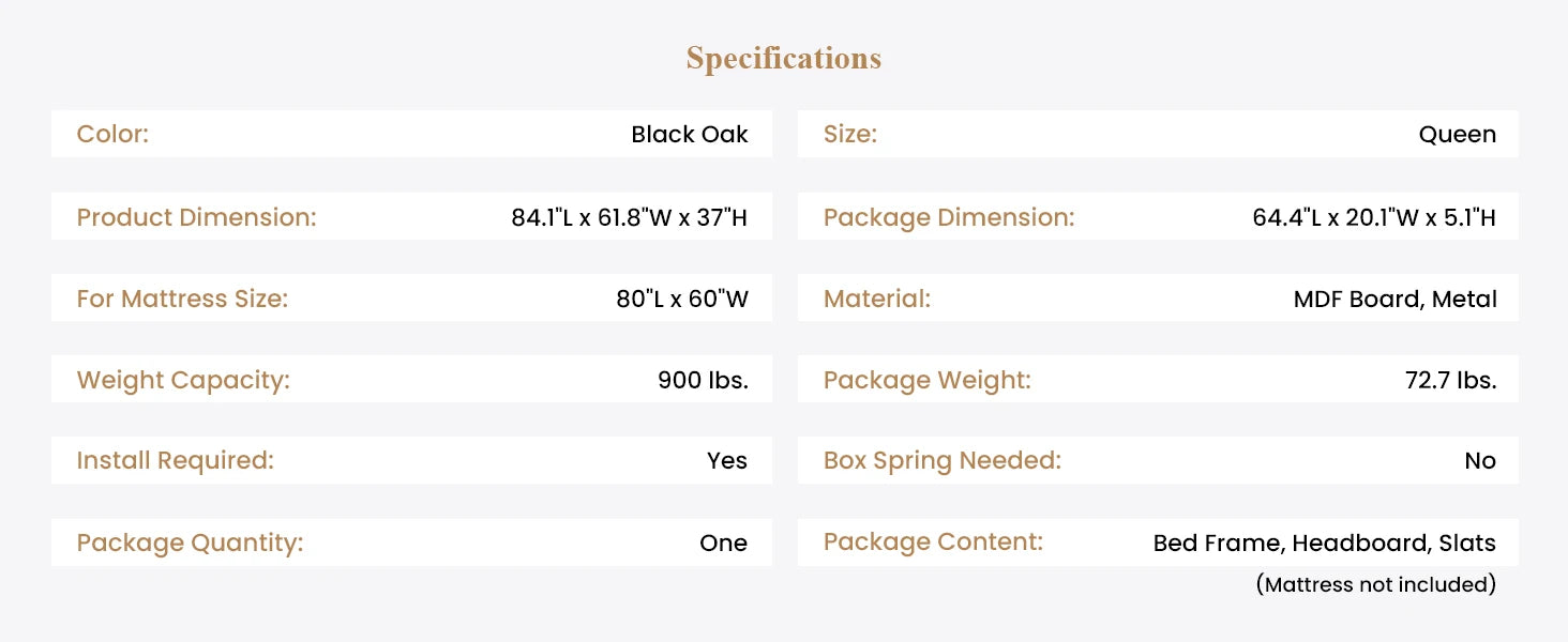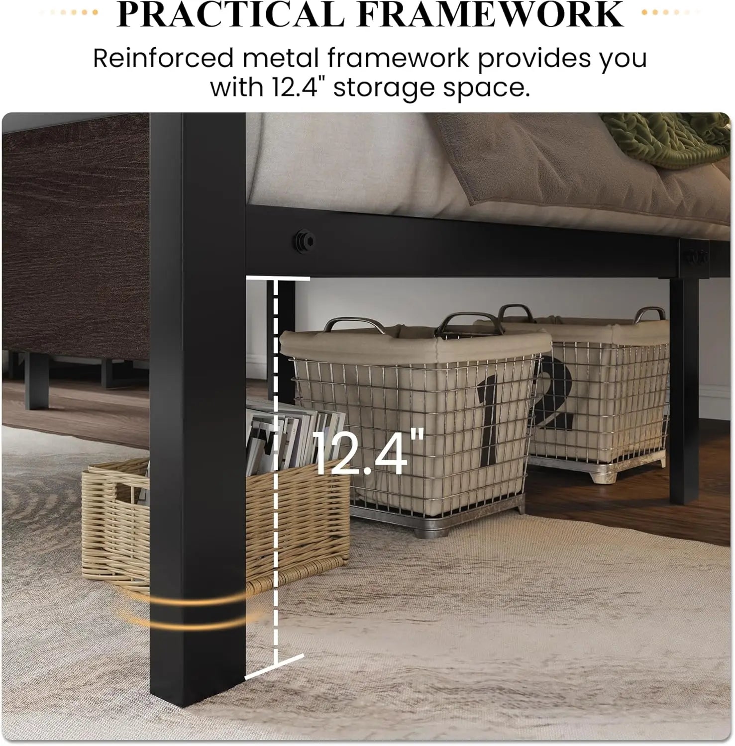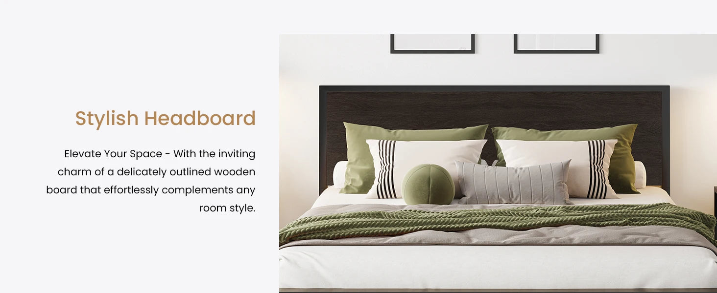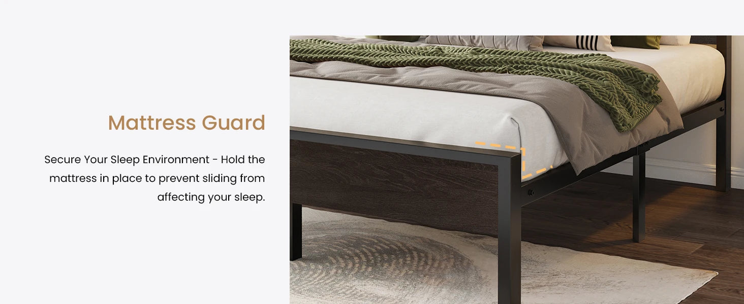 Queen Bed Frame with Headboard, Heavy Duty Platform Base with Under-Bed Storage, Solid Metal Construction, No Box Spr