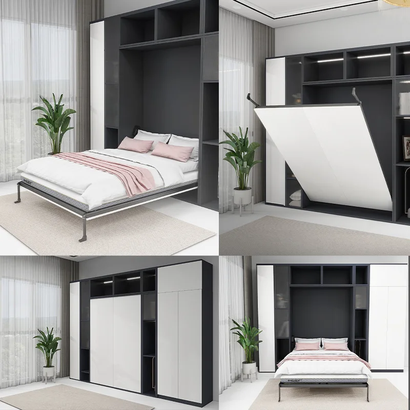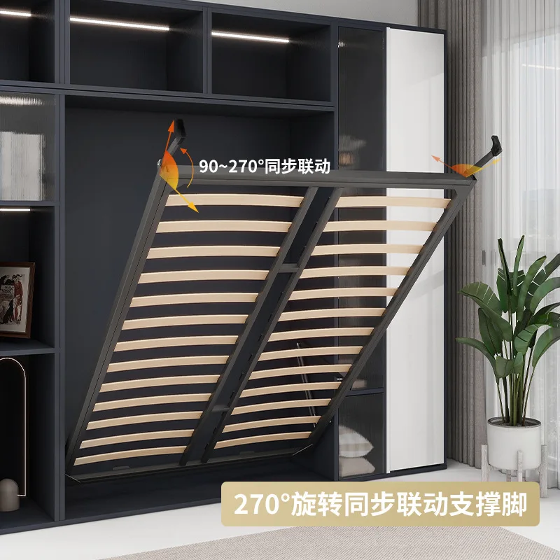 Automatic foot invisible bed front side flip hidden integrated folding bottom flip wall wardrobe hidden wall hardwar