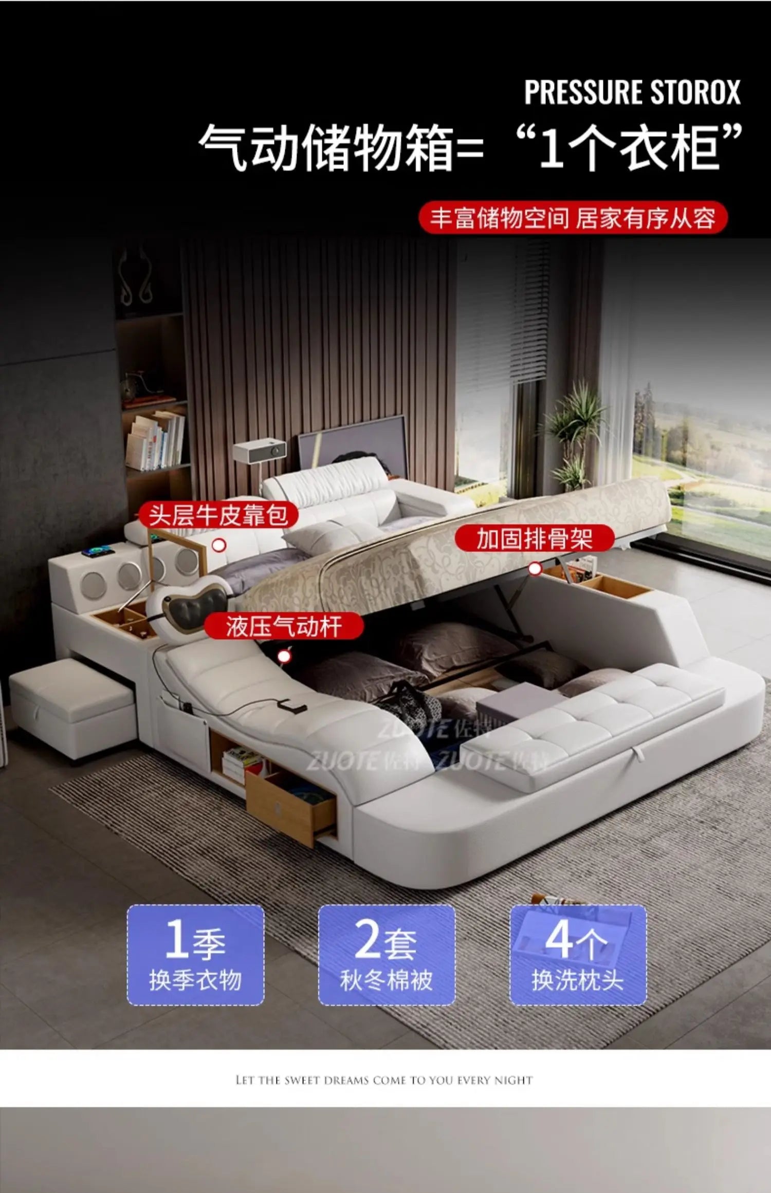 9. Adjustable bedside headrest with free third gear to meet various needs.